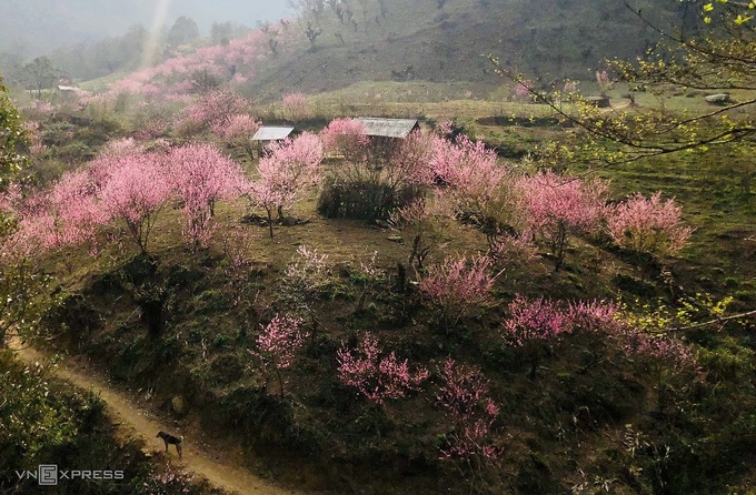 Phìn Hồ, một trong hai thôn cao nhất xã Y Tý, huyện Bát Xát, khoác lên mình chiếc áo mùa xuân với hàng trăm cây đào bung nở.