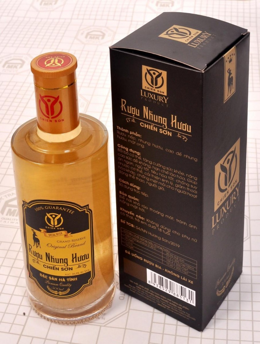 Tại Công ty Cổ phần Nông nghiệp Hương Sơn, đã kết hợp nhung hươu Hương Sơn với rượu nếp từ những vùng nấu rượu nổi tiếng của Hà tĩnh như Đức Thọ, Can Lộc, Thạch Hà, Cẩm Xuyên để làm nên sản phẩm Rượu nhung hươu Chiến Sơn thượng hạng. Các cụ già cao niên khỏe mạnh, da dẻ hồng hào khi được hỏi về bí quyết đều cho rằng uống rượu ngâm với nhung hươu Hương Sơn một cách điều độ và khoa học chính là phương pháp tuyệt vời. Theo kinh nghiệm dân gian, rượu nhung hươu rất tốt cho sức khỏe, hạn chế việc phải vào bệnh viện. Đối với nam giới, rượu nhung hươu giúp tăng cường sinh lực, là chìa khóa giữ lửa hạnh phúc cho gia đình; giúp bồi bổ sức khỏe, tăng sức đề kháng; là bài thuốc giúp cân bằng nội tiết, tinh thần sảng khoái, tăng hiệu quả làm việc, đẹp da giữ dáng cho các chị em phụ nữ.