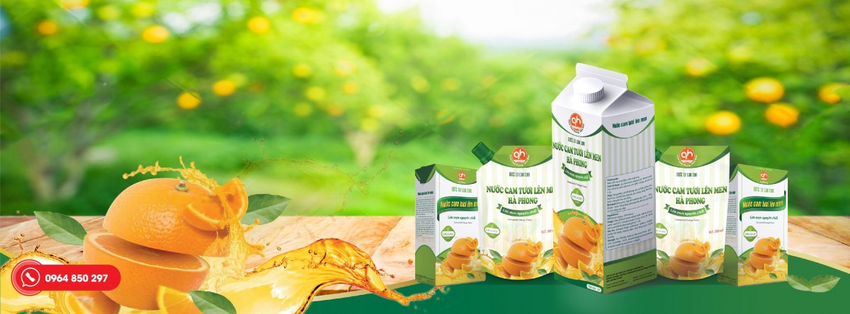 Nước Cam Tươi Lên Men Hà Phong  một trong những sản phẩm được HTX Hà Phong đã khảo sát, nghiên cứu và quyết định chế biến đưa ra thị trường chuỗi các sản phẩm chế biến từ trái cam tươi.