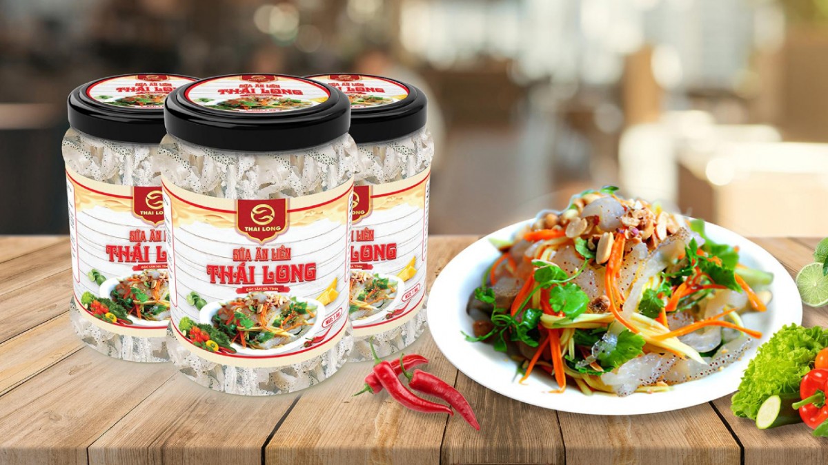 Sứa ăn liền Thái Long được chế biến từ sứa tươi, muối tạo thành sản phẩm sứa chín có màu trắng tự nhiên, đan xen, kết hợp với màu sắc của các gia vị ớt, tỏi. Sản phẩm dai, ngon, giòn, vị thanh mát, không sử dụng hóa chất bảo quản, đảm bảo an toàn thực phẩm…, là thực phẩm tốt cho sức khỏe. Sứa ăn liền Thái Long là sản phẩm được chế biến sẵn, bạn có thể dùng ngay hoặc chế biến thành các món nộm khác nhau rất đơn giản và nhanh chóng. Với hương vị chua ngọt thơm ngon của gia vị, độ giòn, dai đặc trưng của sứa, sản phẩm đảm bảo sẽ làm hài lòng khẩu vị của nhiều thành viên trong gia đình. Sứa ăn liền Thái Long đã được đóng gói kín đáo, giúp bạn dễ dàng bảo quản và sử dụng trong gia đình. Với những ưu điểm vượt trội nên sản phẩm này không chỉ được người tiêu dùng trong tỉnh lựa chọn mà đang được phủ sóng tới thị trường các thành phố lớn như Hà Nội