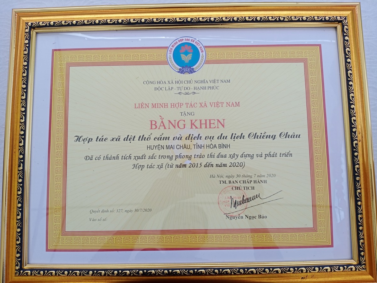 Hợp tác xã Dệt thổ cẩm và Dịch vụ du lịch Chiềng Châu đã có thành tích xuất sắc trong phong trào trong thi đua và phát triển hợp tác xã ( từ năm 2015 đến 2020 )