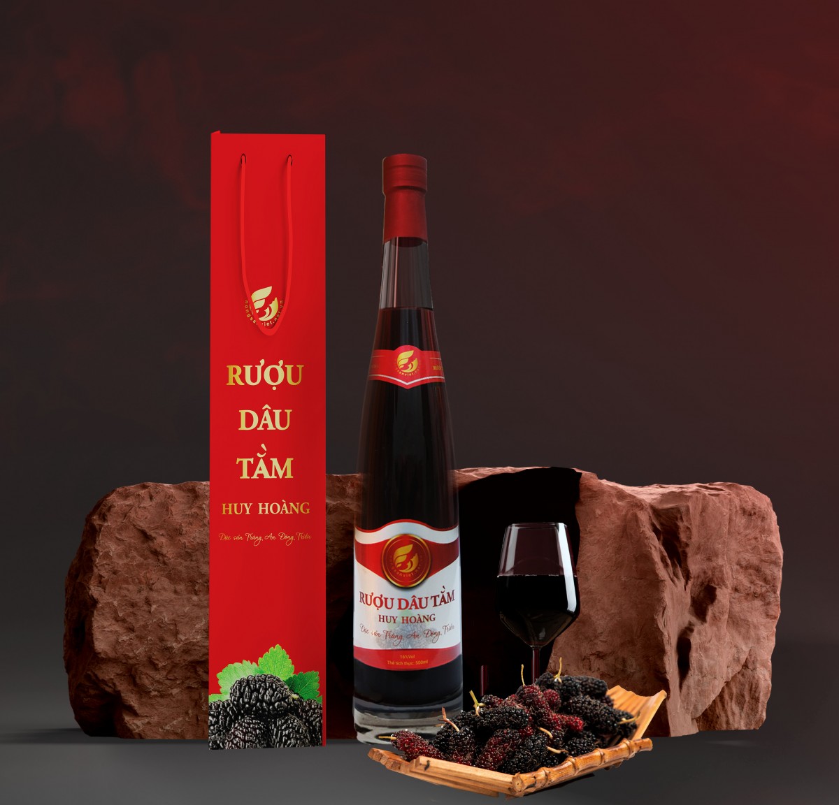 Huy Hoang Production and Trading Cooperative has launched a line of mulberry wine products, with a sweet aroma from mulberry fruit, promising to bring customers interesting experiences. The products are made from premium Trang An - Dong Trieu mulberry raw materials combined with the secret recipe of glutinous rice wine.