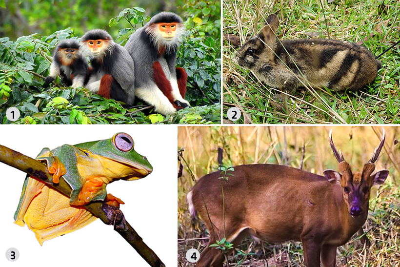 Vườn Quốc gia Vũ Quang Hà Tĩnh có diện tích hơn 55.000 ha. Về thực vật tại đây có hơn 1.612 loài thực vật, trong đó có tới 94 loài thuộc sách đỏ Việt Nam, 339 loài cây gỗ hiếm như lim, trầm hương, cẩm lai... và hơn 686 cây thuốc… Về động vật, Vườn Quốc gia Vũ Quang có 94 loài thú, 58 loài bò sát, 325 loài chim, 88 loài cá. Hơn 300 loài lưỡng cư và bướm… Trong danh sách này có 2 loài cực kỳ nổi tiếng là mang lớn và sao la.
