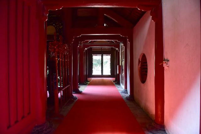 Khuôn viên đền, thời gian từ năm 1959 đến 1975 là trường đào tạo cán bộ miền nam ở miền bắc Việt Nam. Trong khuôn viên đền có một tấm bia bằng đá granit được các cựu học sinh miền nam mang ra từ Bình Định.