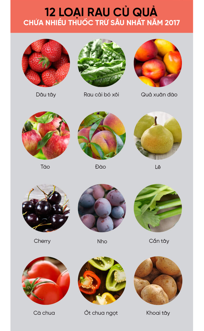 12 loại rau củ quả chứa nhiều thuốc trừ sâu nhất 2017