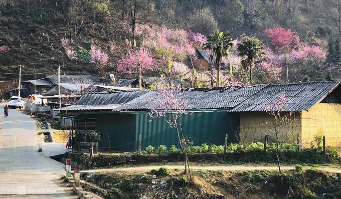 Phìn Hồ, một trong hai thôn cao nhất xã Y Tý, huyện Bát Xát, khoác lên mình chiếc áo mùa xuân với hàng trăm cây đào bung nở.