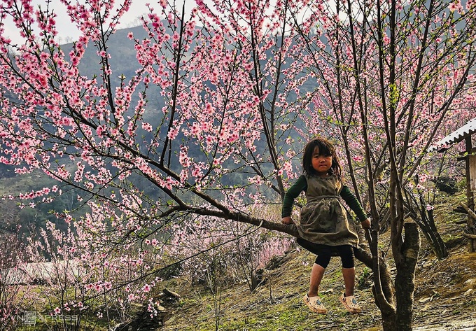 Bé gái H'Mông, Lý Thị Sua, 5 tuổi, trèo lên cây đào đang nở đẹp trước nhà sau khi cho cho lợn ăn. Phìn Hồ có điện nước, hàng hóa chủ yếu là tự cung tự cấp, đời sống bà con nơi đây còn khó khăn. Trẻ con được học hết lớp 2 tại thôn, sau đó được nhà trường nhận về ở bán trú đến lớp 9, sau đó hầu hết các em về phụ gia đình. Thanh niên trong thôn chuyên làm hướng dẫn viên, porter dẫn khách leo núi.
