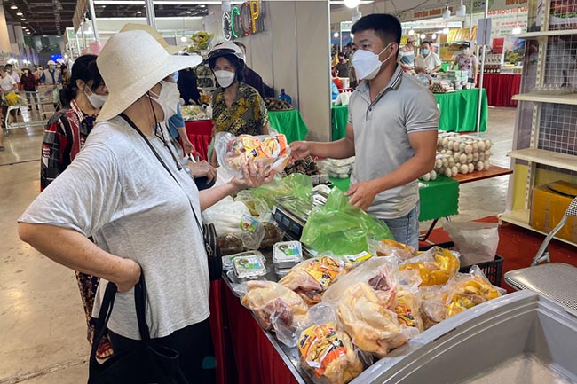 Sản phẩm gà Tiên Yên được ưa chuộng tại Hội chợ OCOP Quảng Ninh hè 2022.