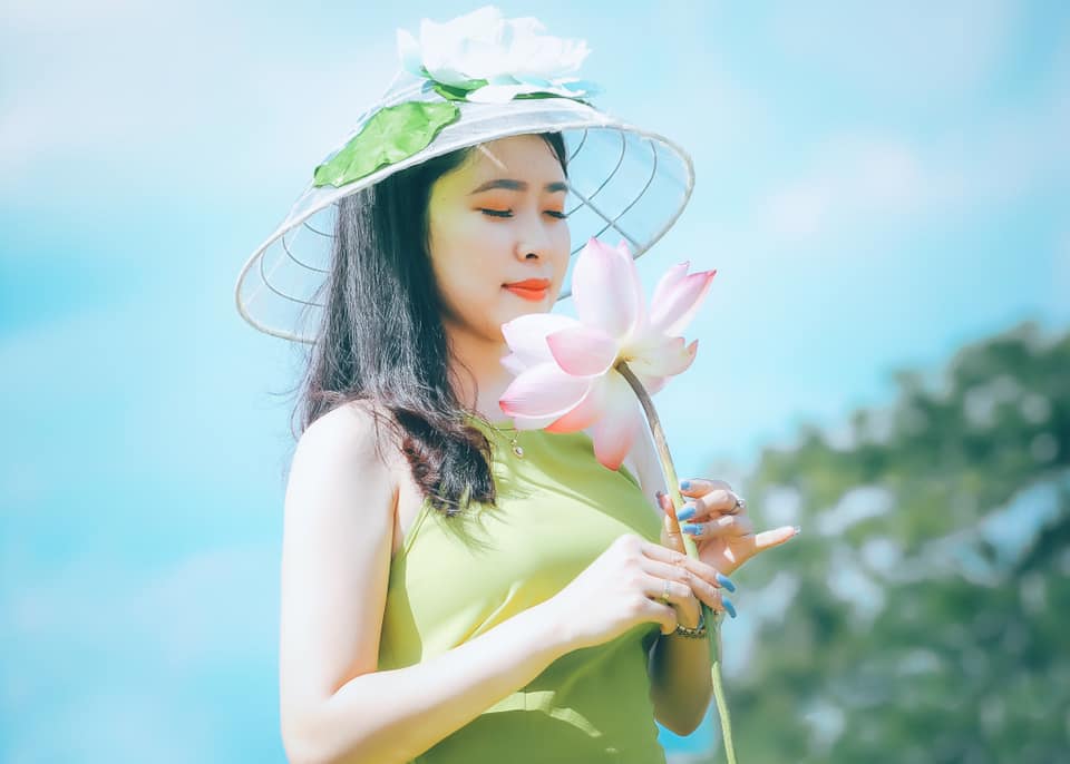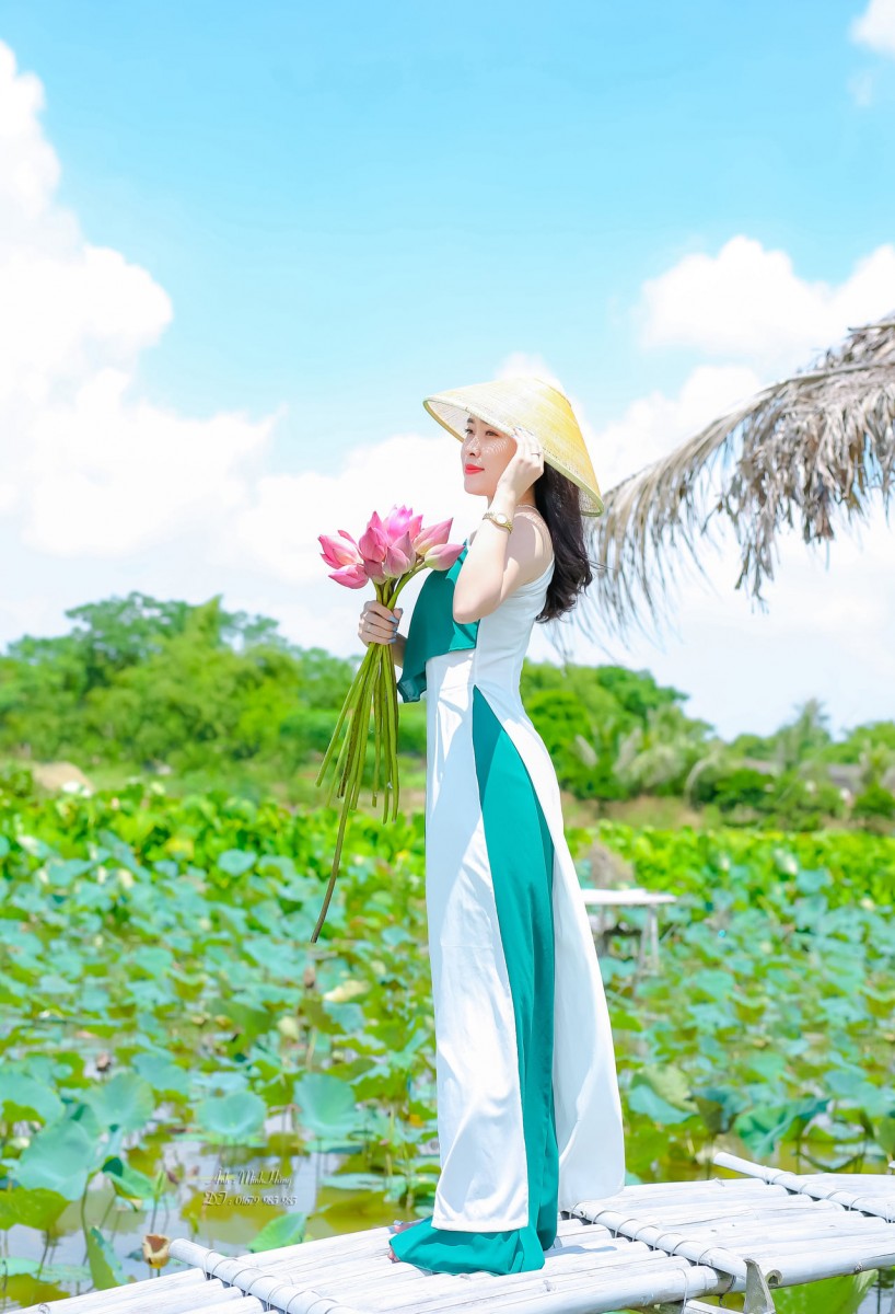 Hình ảnh thiếu nữ tinh khôi, thướt tha bên đầm sen ( Ảnh: Minh Hằng_0379 985 985)
